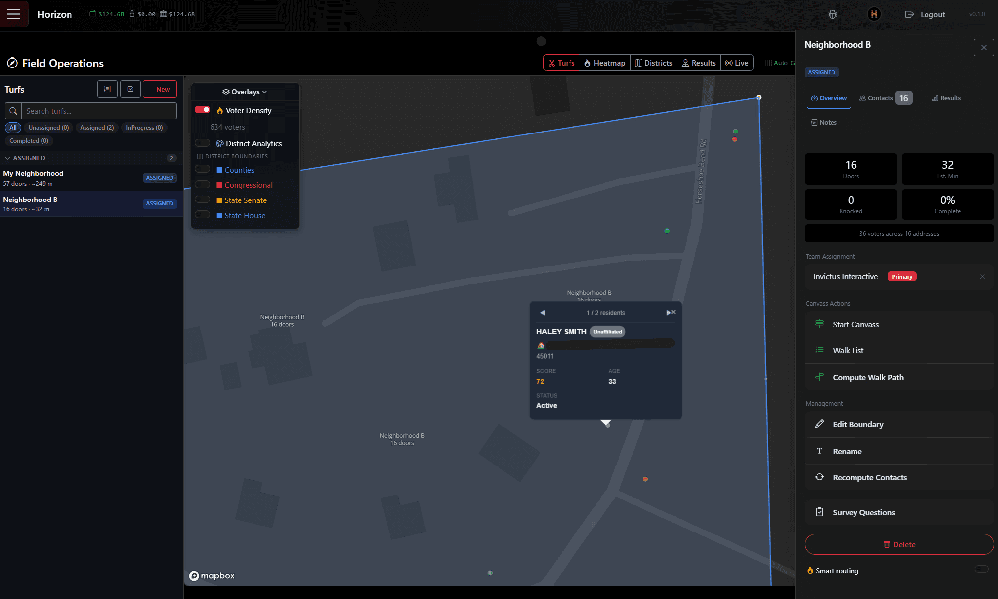 create turfs for your canvassers and browse your voter data - filterable and mapped out
